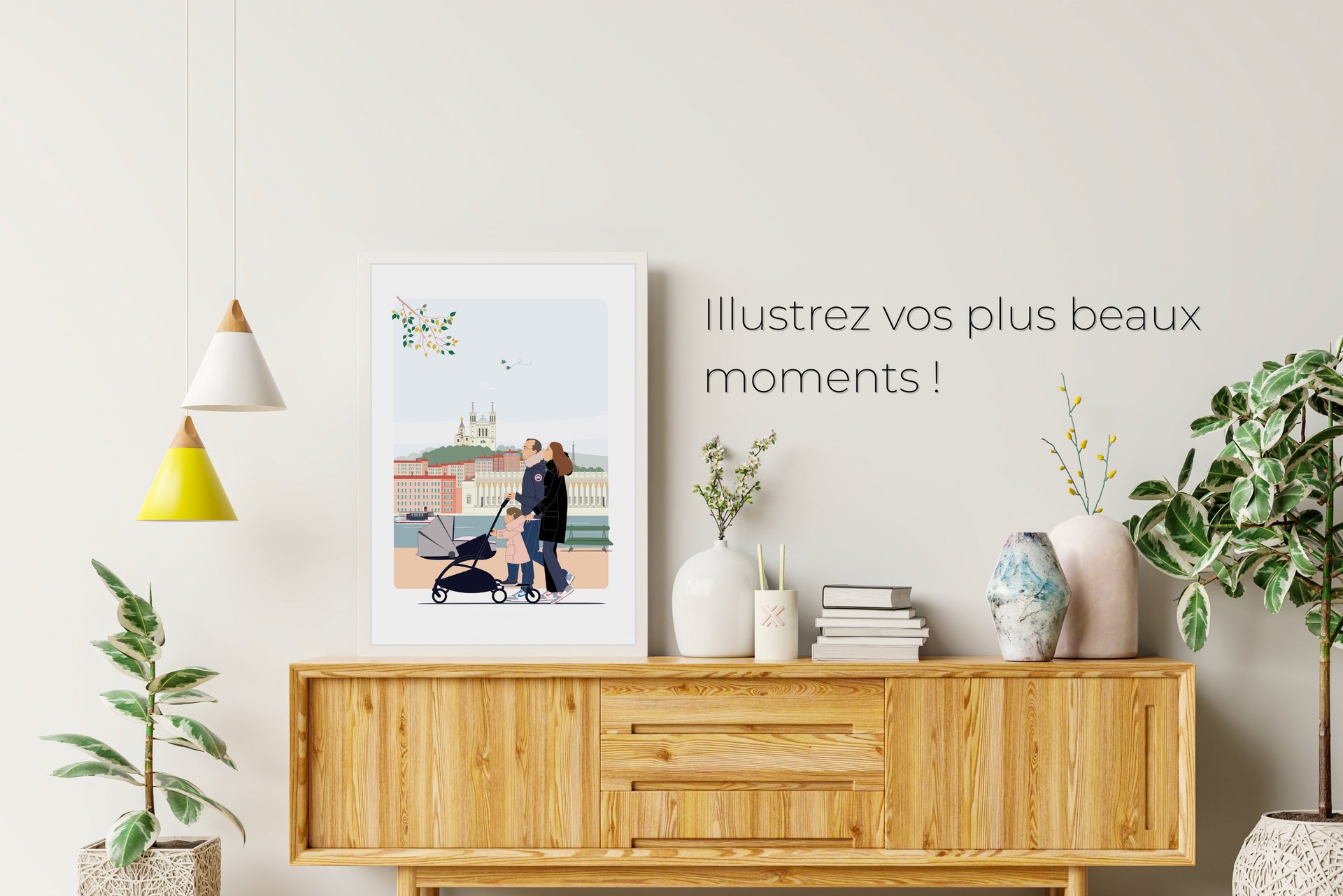 Nos illustrations personnalisées captent vos plus beaux moments en famille ou entre amis. Naissance, baptême, mariage, anniversaire ou vœux, nous rendons chaque instant unique et poétique !
